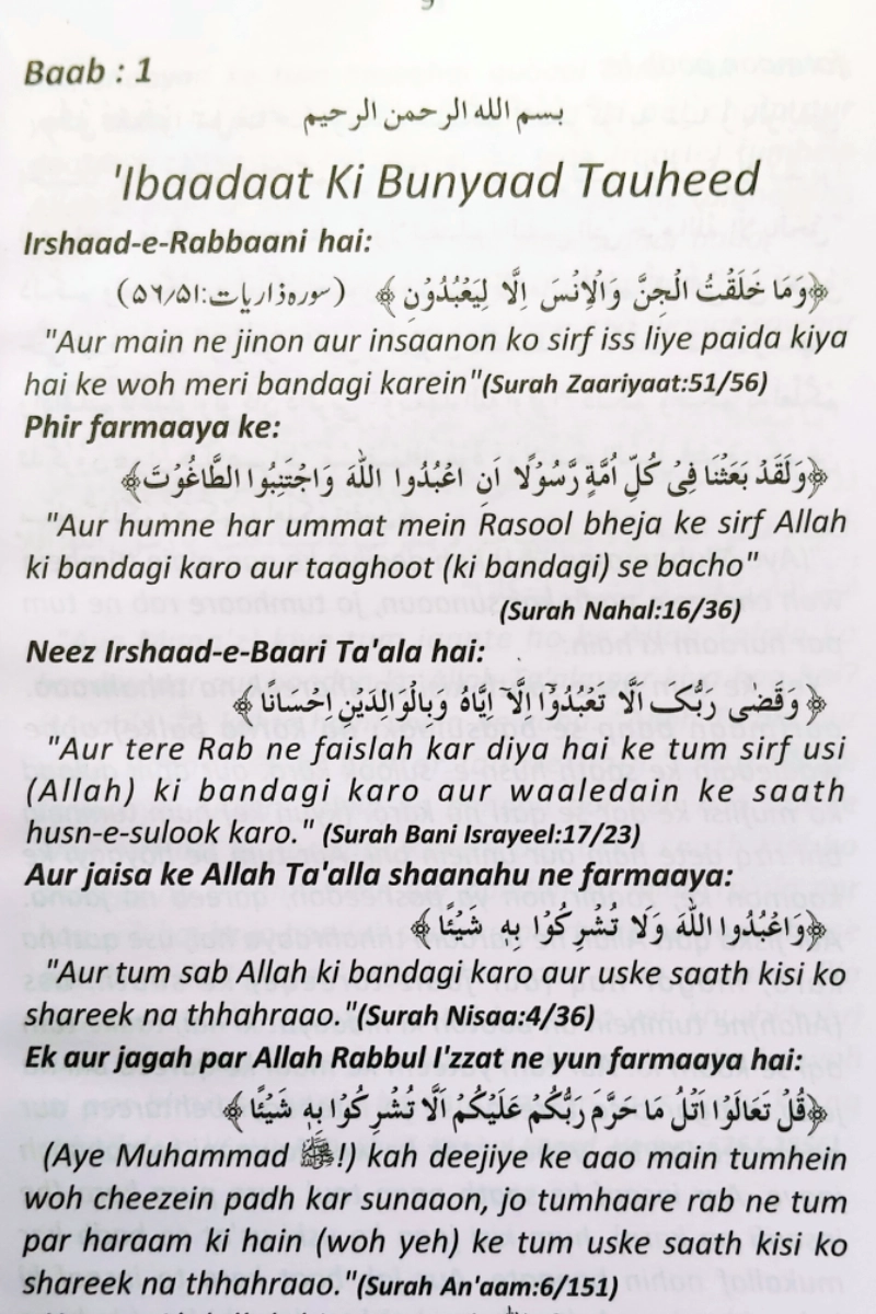 Tawheed Islam ki bunyad hai. Agar aqeedah durust na ho to ibadat aur aamaal ka koi faida nahi hota. Kitaabut Tauheed Roman Urdu qari ko yeh samjhati hai ke: